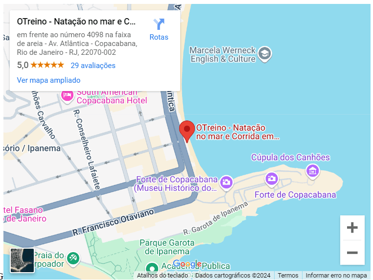 Localização dos treinos presenciais de natação n mar e Educativos de Corrida de Rua e Trail Run